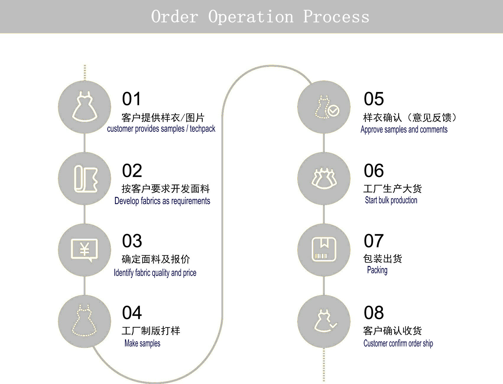 Our products cover both woven and knitted products. The samples will be sent out within 4-5 days after receiving the worksheets and preparing the materials. For the bulk orders, our delivery time is 30-45 days after PPS, fabric and trims are confirmed for bulk production.